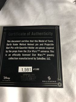 Star Wars Medal Of Yavin/ Melted Darth Vader / Projectile Dart Pin All In Like New Condition $200Toney, AL