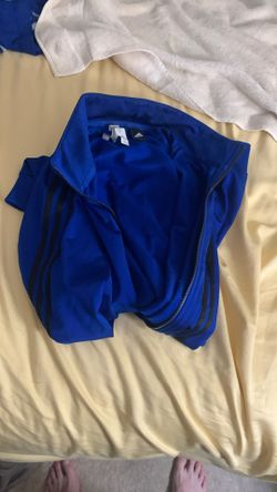 Adidas Large Sweat Suit Top Blue Black Stripes $75U Saddle Riv, NJ