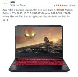 Acer Nitro 5 Gaming Laptop, 9th Gen Intel Core i5-9300H, NVIDIA GeForce GTX 1650, 15.6" Full HD IPS Display, 8GB DDR4, 256GB NVMe SSD, Wi-Fi 6, Backli$900Antioch, CA