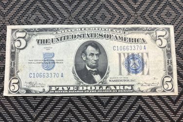 1934 5 Dollar Bill SilverBlue Rare Error Note !!$300Fresno, CA