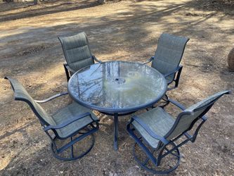 hampton bay outdoor patio table with 4 chairs, table is 52”Round 28” Height $175Snellville, GA