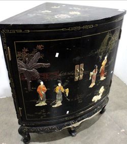 Chinoiserie Black Lacquered Corner Cabinet with Inlay- 30 x 19 x 35$85Lothian, MD