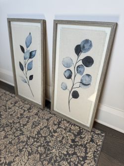 Two Framed Art - Blue Floral On Linen In Shadow box Frame $40St. Petersburg, FL