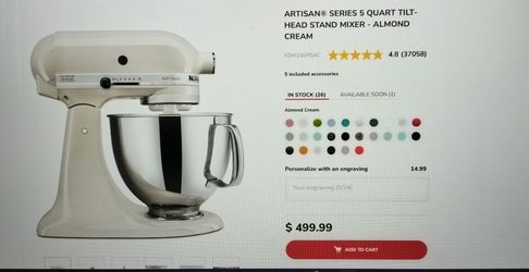KitchenAid Artisan Series 5 Quart Tilt-Head Stand Mixer$275San Diego, CA