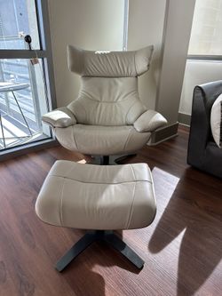 Living Spaces Reclining Leather Chair And Ottoman $300Boca Raton, FL