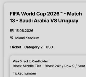World Cup M13 Saudi Arabia Vs Uruguay$430Miami, FL
