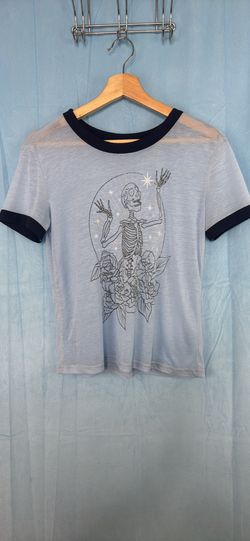Sheer Blue Skeleton Floral Graphic Tee - Size S/M$5Gardena, CA
