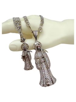 Set de Dijes de la Santa Muerte con micro pavé brillante en tono plateado, 3.5 pulgadas, 2 pulgadas$80Lake View Terrace, CA
