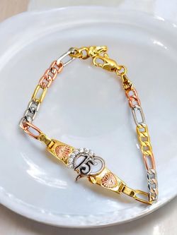 Pulsera, 15 años con circonitas blancas y baño de oro tricolor de 18k, 7 pulgadas de circonitas cúbicas$18Lake View Terrace, CA
