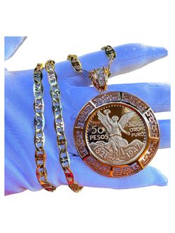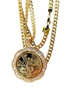 Mexican Centenario 50 Peso Coin Tri-Tone Chain CZ Pendant, Gold Plated 24" Chain$45Lake View Terrace, CA