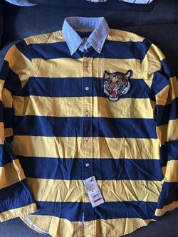 NWT Ralph Lauren Navy Blue/Yellow Stripes YALE TIGER PATCH Oxford Shirt Medium$100Queens, NY