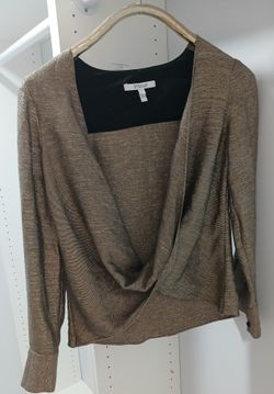 Designer Long Sleeve Drapped Front Women's Blouse With Button Sleeve Glitter Bronze/Gold Size US 0/XXS$25Jupiter, FL
