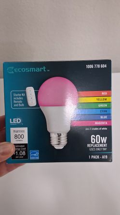 🔥NEW🔥 EcoSmart 60-Watt Equivalent A19 CEC Color Changing LED Party Light Bulb Starter Kit with Remote (1-Pack).$10Arlington, TX