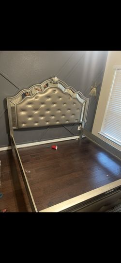 King Size sliver Mirror Bed Frame, mattress And Stool$700Houston, TX