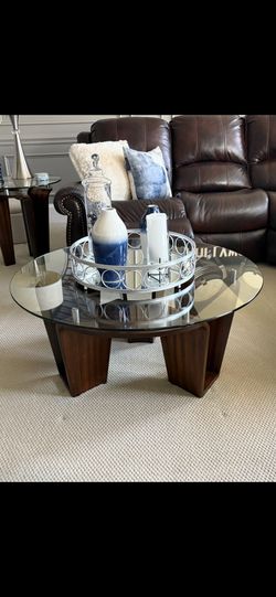 3 Piece Dark Brown And Glass Table Set (coffee Table, End Table And Sofa Table)$425Marvin, NC