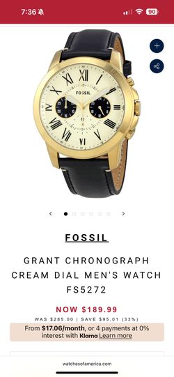 Fossil Grant Chronograph Cream Dial Men’s Watch FS5272$125Santa Ana, CA