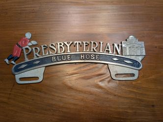 Vintage Presbyterian Blue Hose License Plate Topper$60Lawrenceville, GA