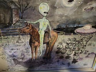 Original Watercolor UFO & Visitors Absolutely Brilliant Painting $450Golden, CO