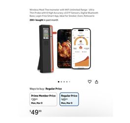 Brand new Wireless Meat Thermometer with WiFi Unlimited Range - Ultra Thin Probe with 6 High Accuracy ±0.5°F Sensors, Digital Bluetooth Base, Login-Fr$15Queens, NY