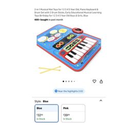 Brand new 2-in-1 Musical Mat Toys for 1 2 3 4 5 Year Old, Piano Keyboard & Drum Set with 2 Drum Sticks, Early Educational Musical Learning Toys Birthd$9Queens, NY