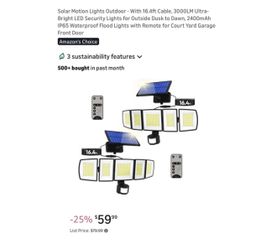 Brand new Solar Motion Lights Outdoor - With 16.4ft Cable, 3000LM Ultra-Bright LED Security Lights for Outside Dusk to Dawn, 2400mAh IP65 Waterproof F$38Queens, NY