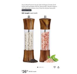 Brand new Acacia Wood Premium Acrylic Salt and Pepper Grinder Set 8 Inches Salt and Pepper Mill Set, Manual Mills- Wooden Shakers with Adjustable Cera$12New York, NY