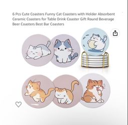 Brand new 6 Pcs Cute Coasters Funny Cat Coasters with Holder Absorbent Ceramic Coasters for Table Drink Coaster Gift Round Beverage Beer Coasters Best$7New York, NY