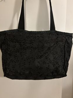 Black Sportsac Satchel Style Bag With Black Embroidered Leaves Design$35West Los Angeles, CA