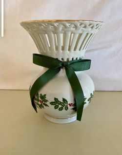 Formalities~Baum Bros Christmas Holly Vase Open Lattice Edge W/Gold Trim H~7.75”$15San Diego, CA