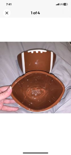 New Set Of 2 RAE DUNN Football Offense Defense Football Shaped Dip Bowls.$30Choctaw Beach, FL