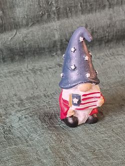 Patriotic Cement Lil Mini Gnome Blue Hat White Stars Red Shirt Holding US Flag $8Oklahoma City, OK