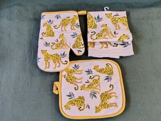 3 Pce Yellow Cheetah Print Oven Mitt Pot Holder Kitchen Towel $13Oklahoma City, OK
