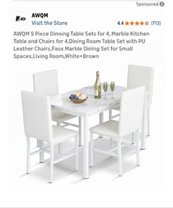 AWQM 5 Piece Dinning Table Sets for 4, Marble Kitchen Table and Chairs for 4,$90Riverside, CA