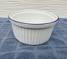 Vintage Ribbed BIA White Porcelain Casserole Souffle Dish Cobalt Trim$12San Diego, CA