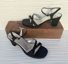 Vintage Mudd Strappy Shoes Black Satin Ankle Buckle Heels Size 8.5M$5San Diego, CA