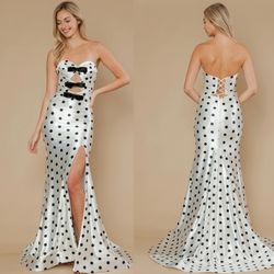 New With Tags Fitted Satin Polka Dot Long Formal Dress & Prom Dress $299$299Indianapolis, IN
