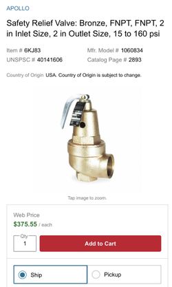 Safety Relief Valve$170Vallejo, CA
