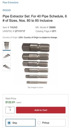 Ridgid Pipe Extractor Set$60Vallejo, CA