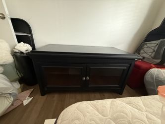Black wood tv stand with glass doors$100Los Angeles, CA
