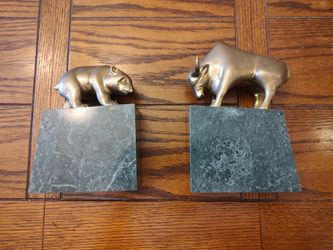Stock market Bookends Vintage Gatco Bear and Bull Wall Street Brass and Marble $40Santa Ana, CA