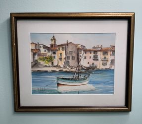 St. Tropez Harbor Boat Watercolor Original Artwork Signed French Artist Chrismau$85Southold, NY