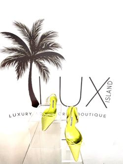 MANOLO BLAHNIK Lime Green Nylon Bow Accents Heels Size 5$200Hilton Head Island, SC