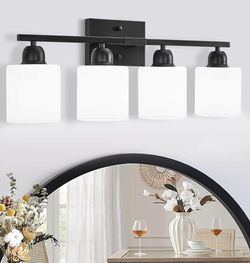 Lámpara de baño negra, lámpara de tocador de baño de 4 luces con pantallas de vidrio esmerilado blanco lechoso, lámpara de pared de enchufe E26$60Gastonia, NC