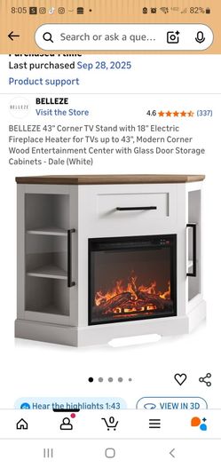 Corner TV Stand with Electric Fireplace Heater$200Sherwood, OR