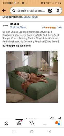 Chaise Lounge Chair Oversize Corduroy Green $270Sherwood, OR