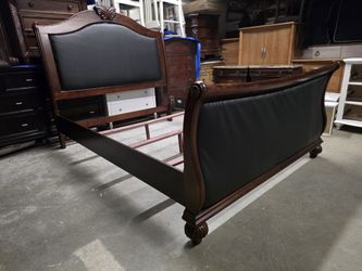 Dark Mahogany / Black Leather Queen Size Sleigh Bed Frame$200West Babylon, NY