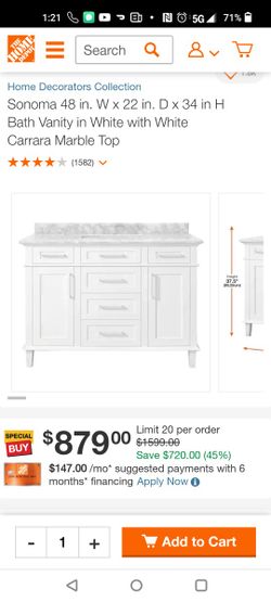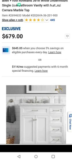allen + roth Roveland 36-in White Undermount Single Sink Bathroom Vanity with Natural Carrara Marble$400Garfield Heights, OH
