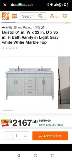 Bristol 61 in. W x 22 in. D x 35 in. H Bath Vanity in Light Gray white Whtie Marble Top$900Garfield Heights, OH