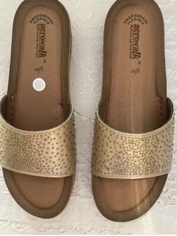 NEW. SOFT Aerowalk Gold Rinestone Summer Shoes$20Carteret, NJ