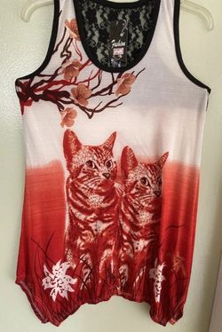 Cool Summer Red And Black Blouse Two Cats With Red Stones Embrossed$13Carteret, NJ